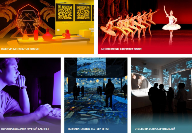 Единый интернет-портал «Культура.РФ» рассказывает об интересных и значимых событиях и людях в истории литературы, архитектуры, музыки, кино, театра, а также о народных традициях и памятниках нашей природы в формате просветительских статей, заметок, интервью, тестов, новостей и в любых современных интернет-форматах.