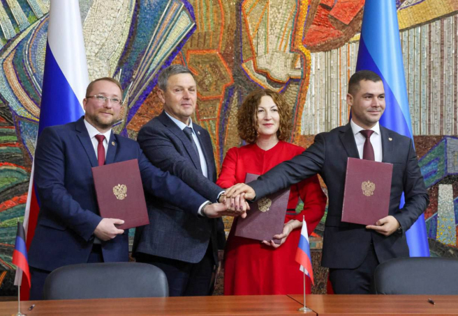 Министр культуры Запорожской области, Назина Светлана Геннадьевна, на священной земле музея «Молодая Гвардия» в Краснодоне, стала участником события, имеющего поистине историческое значение для культурной сферы наших новых регионов – четырехстороннего подписания важного соглашения о сотрудничестве между Министерством культуры Луганской Народной Республики, Министерством культуры Донецкой Народной Республики, а также Министерствами культуры Херсонской и Запорожской областей.